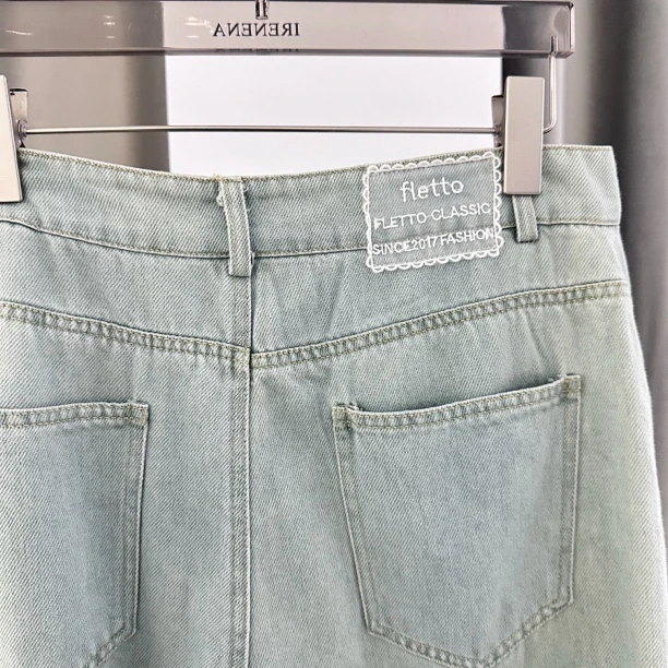 温碧霞自创IRENENA服装春季新款时尚百搭显瘦蕾丝蓝色阔腿牛仔裤
