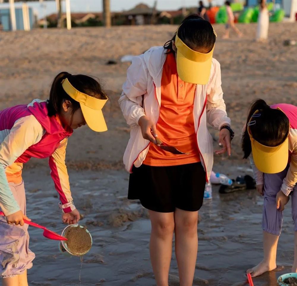 赤脚踩进那香海黄金海岸的细沙里,孩子们秒变 “玩沙大师”,城堡、地道随心造🏰!傍晚看夕阳把海面染成橘子色,浪漫值拉满~晚餐后开营,导师把安全细节讲得超详细,安全感直接拿捏!